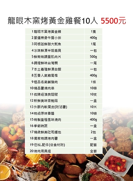 龍眼木窯烤黃金雞餐(冷凍)10人5000元